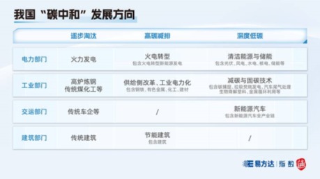 所谓“高碳减排”,是指通过调整产业结构,减少、关停高碳排放的行业和生产,创新工业生产模式,改变人类高碳生活方式等,以降低化石能源的消费总量。而“深度低碳”,是指主要通过调整能源结构,实现对化石能源的替代,以实现降低碳排放量。前者相关的行业包括火电转型、钢铁、有色金属、化工、建材和绿色建筑等,后者相关的行业主要包括清洁能源与储能、新能源汽车以及减碳与固碳技术等。