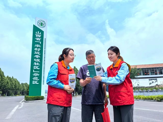 为全面贯彻新发展理念,加快实现“双碳”目标,推动绿色低碳高质量发展,国网山西电力长治供电公司积极服务于当地重点项目建设。上党区荫城镇的山西省农村近零碳社区示范工程,将“双碳”目标与乡村振兴战略有机融合,以农村社区为载体,项目估算总投资近3亿元,由生物质供热项目、生物质供电项目、种养循环、生活污水一体化处理工程、分布式屋顶光伏建设、“智碳星”能源控制系统 6 个子项目构成。目前项目正在紧密筹划、科学推进。图为国网长治市上党区供电公司工作人员,向荫城镇居民介绍分布式光伏发电并网事项。