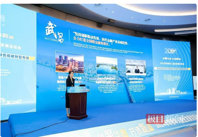 武昌碳金融集聚区首席推介官刘丽莎,在会上向大家推介了武昌碳金融集聚区的优势与机遇,武昌区在绿色低碳转型方面的坚定决心和取得的进展。