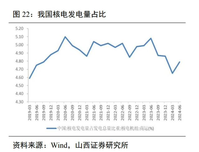 核电:(1)核能发电是稳定、清洁的能源。(2)我国核电技术已经实现二代向三代的迭代升级,四代技术陆续开始应用,整体上我国核电已进入世界先进行列。(3)我国在碳中和顶层设计层面提出“积极安全有序发展核电”,确定了核电在构建现代能源体系中的定位。近年来我国核电机组核准进程加快。中国核能协会预计到 2035 年核电发电量占比将达10%左右。(4)AI 电力需求激增,推动核电复兴。