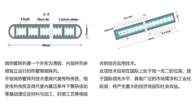 每平方厘米有30到60条独立运行的微通道,每个通道里又嵌有微翅片,通道内还封装微量的液态工作介质,微热管阵列如同一支出色的运输部队,即使在极小的温差下,也能高效地完成热量传导。为了更直观展示这一技术,在禾丰亚泰实验室,技术研发人员徐红霞将一壶热水浇到一个简易风扇装置上,几秒后,风扇在没有任何电力的辅助下快速转了起来。