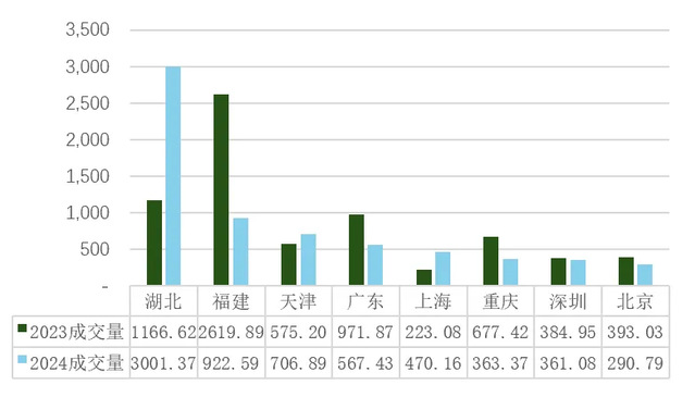 图11:地方试点碳市场2023 – 2024年成交量变动情况