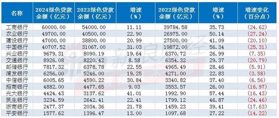 与2023年增速相比,上述14家银行绿色贷款规模的同比增速相对放缓,尤其是建行、交行、民生银行、工行、中行、农行,去年同比增速均较2023年增速降超20个百分点。