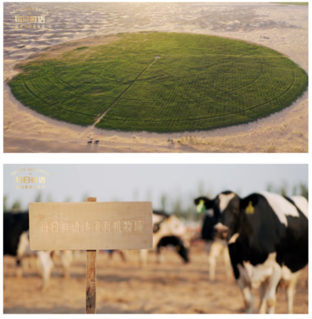 在气候治理方面,每日鲜语以乌兰布和沙漠有机牧场为支点,开创“种、养、护”三位一体生态模式,将荒漠治理与有机牧场运营结合,真正实现“产奶-治沙”的生态经济闭环。