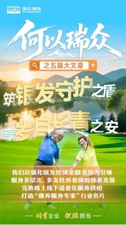 养老金融是开拓银发经济蓝海、促进中国式养老事业高质量发展的关键钥匙。完善多层次、多支柱的养老保险体系是应对人口老龄化挑战的有力支撑。瑞众保险聚焦养老产业投资布局与专业化建设运营,为广大客户提供多层次、多支柱的适老化康养服务,争当“保险行业的康养服务专家”。积极开展政策性健康险业务,创新开发多种保障型产品,加快整合健康服务资源,整合养老照护、护理陪伴等新质养老需求,提升健康险专业化经营水平,已为广大客户提供健康和养老保障4200亿元,银发专区服务柜面百分百覆盖,并荣获2025“银龄生活友好品牌”大奖。
