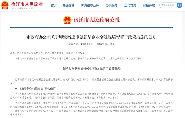 支持内容:对通过权威机构获得“碳中和证书”的制造业企业,给予最高30万元支持;对上年度全年碳排放强度(年度企业碳排放值/当年企业产值)比之前一年度下降5%及以上,企业通过非交易行为实现减少二氧化碳排放总量上年度比之前一年度的减少量为500吨及以上的,经核定后按照不超过当前市场均价的标准,最高给予支持50万元;对首次开展碳足迹认证且认证产品覆盖企业主要业务领域的制造业企业,最高给予支持50万元。 四、江苏省宿迁市支持创新型企业开展产品碳足迹标识认证