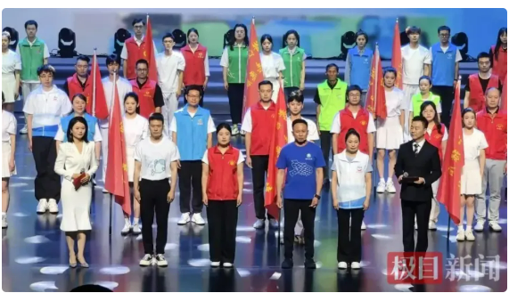 6月4日上午,阳光穿透孝感市文化中心大剧院,2025年六五环境日湖北省主场活动在这里举行。舞台上来自湖北各地的志愿者正在讲述环保故事,“十年来,我们‘小水滴’志愿服务队从无到有,如今在丹江口,像我这样的小水滴志愿者有16.2万人。”志愿者代表袁慧说道。