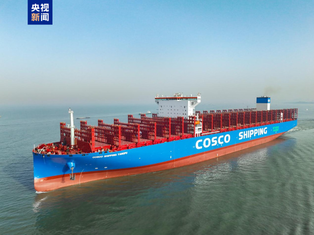 该船总长366米、型宽51米,最大装箱量达16136标箱。配备了11000立方米超大甲醇储存舱,投入远东至美东航线运营后,可支持航线单程航行无需中途加注燃料。该船搭载了中国船舶集团自主研制国产首台套甲醇双燃料主机、甲醇双燃料船用锅炉,以及国内首次应用于集装箱船的甲醇发电机组,双燃料系统可根据航线需求自由切换燃料模式。