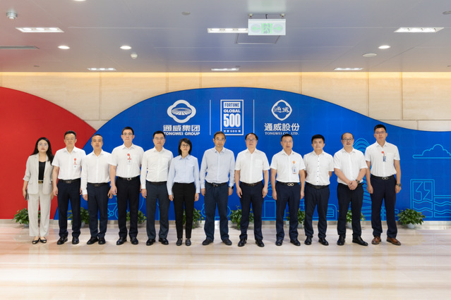 通威股份副董事长严虎率团队热情接待,陪同出席的还有通威新能源总经理邓卫平、通威股份行政总监兼工会主席冯畅、光伏事业部总裁兼能源管理委员会执行主任陈星宇、通威新能源总经理助理何一弘,通威股份光伏商务部组件营销集中式部长沈潇君、分布式部长孙志扬,通威新能源采购部部长胡琪、通威股份能源管理委员会电力管理经理赵江磊等。