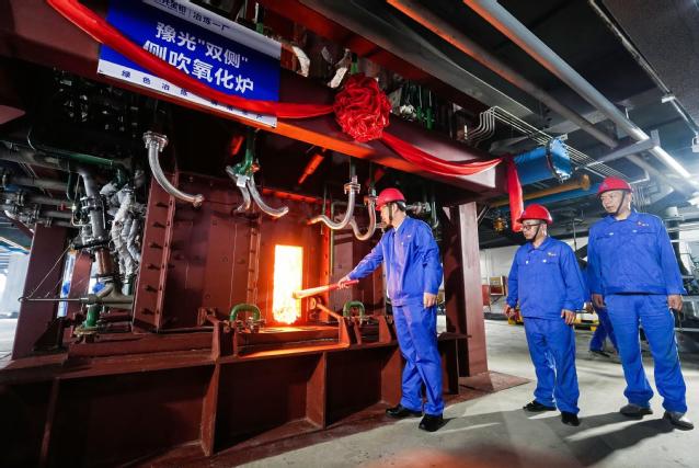 河南豫光资源高值化利用绿色环保工程竣工点火试产现场。