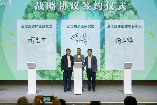 当天,该中心与武汉双碳产业研究院、湖北碳排放权交易中心签署战略协议,共同推动碳计量技术的发展和应用。目前该中心已在武汉“中碳登大厦”设立接待窗口,面向全社会提供及时、便捷的各项“碳业务”。