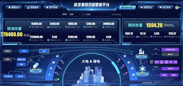 2023年,山东佳华应信发集团需求,成功打造了信发集团双碳智慧服务平台为信发集团提供了全方位的碳资产管理服务。该平台涵盖了双碳驾驶舱、排放管理、资产管理等多项核心功能,为信发集团提供了全方位的碳资产管理服务。通过该平台的建设,信发集团得以更加精准地掌握自身的碳排放情况,提升了碳资产管理能力和水平,为企业的绿色低碳转型提供了有力支撑。