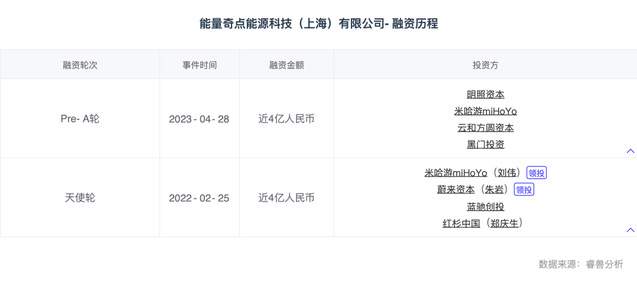 2023年4月,能量奇点完成近4亿元Pre-A轮融资,投资方包括明照资本、米哈游、云和方圆资本与黑门投资。本轮融资的资金将主要用于经天磁体和奇门系统研发。