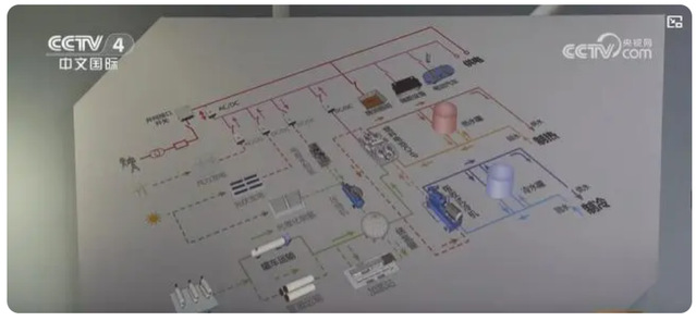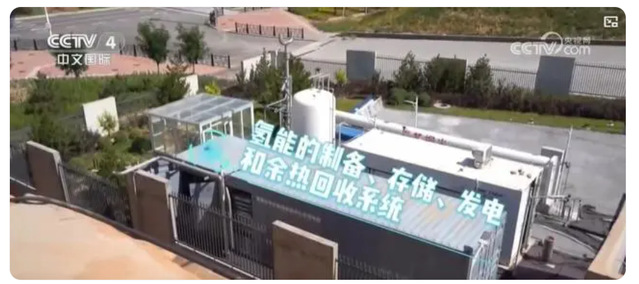 西安交通大学自动化学院教授 徐占伯:我们利用光伏的余电,通过电解水的方式制取氢气,然后把这些氢气通向集装箱(燃料电池冷热电联产系统),在内部发生化学反应,这个化合反应既生成了水,又会释放大量的热。我们利用余热回收的系统把这些热进行回收,在夏季配合浅层地热井和地源热泵系统可以为用户供冷,冬季这些热能就可以直接为用户供热,保证室内的温度在24度左右。