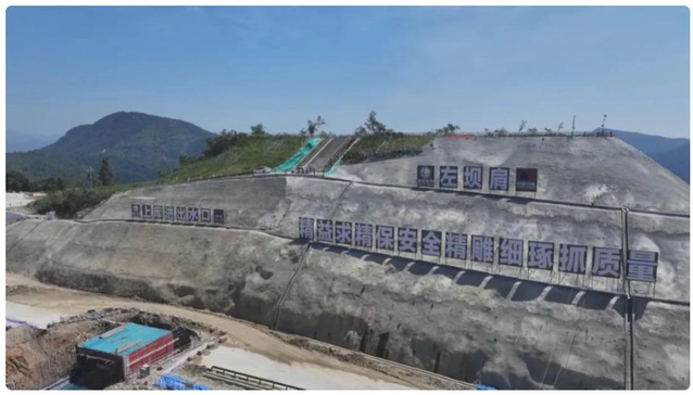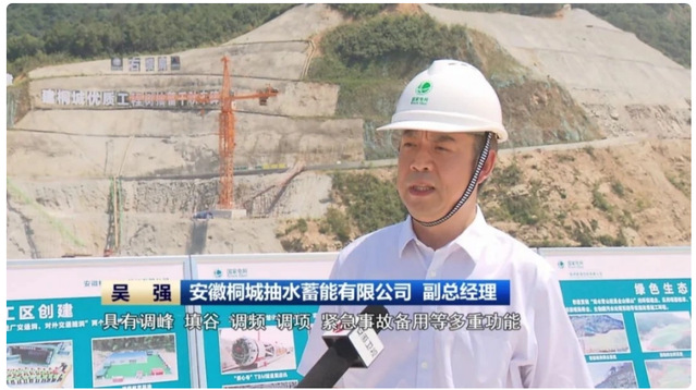我现在是在国网新源安徽桐城抽水蓄能电站项目的建设现场,目前现场正在进行地面两个水库的基础施工和大坝填筑,并同步开展地下输水发电系统工程的开挖,为接下来的发电机组安装做好准备。