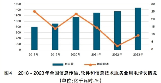 在出现颠覆性的节能降耗革命前,用电量增长速度与产业产能的规模存在明显的正相关。在全国信息传输、软件和信息技术产业领域,制造产业侧的用电增长速度稍低于应用服务侧,考虑部分先进算力的进口设备因素,两者总体上基本保持一致。
