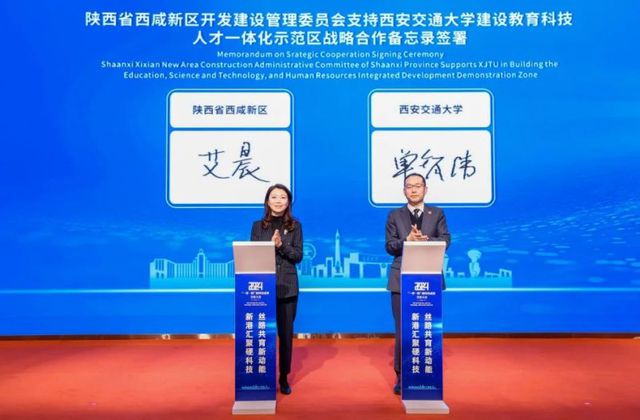“一带一路”硬科技成果交易大会在位于西咸新区沣西新城的中国西部科技创新港举行,西安交通大学与西咸新区签署教育科技人才一体化示范区合作备忘录,西咸能源-西安交大联合双碳研究院揭牌。