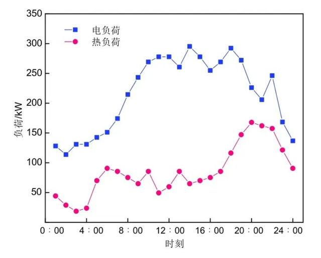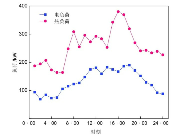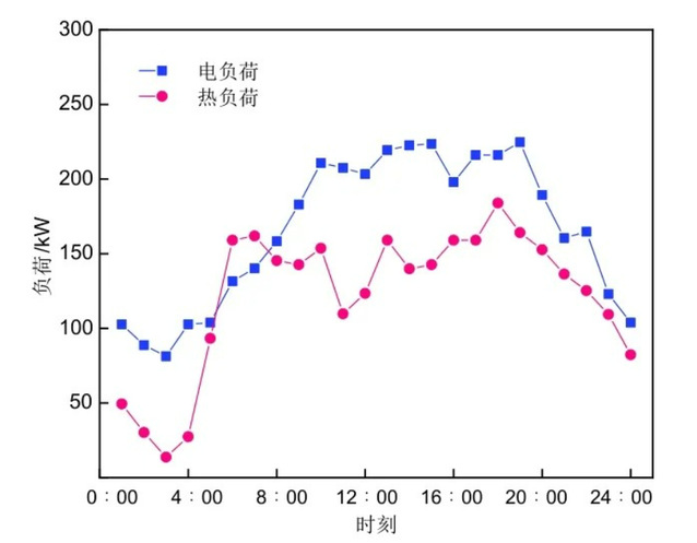 过渡季典型日的电负荷和热负荷如图11所示。从图11可以看出,15∶00电负荷的最大值为223.62 kW,3∶00电负荷的最小值为81.32 kW;18∶00热负荷的最大值为183.99 kW,3∶00热负荷的最小值为13.72 kW。