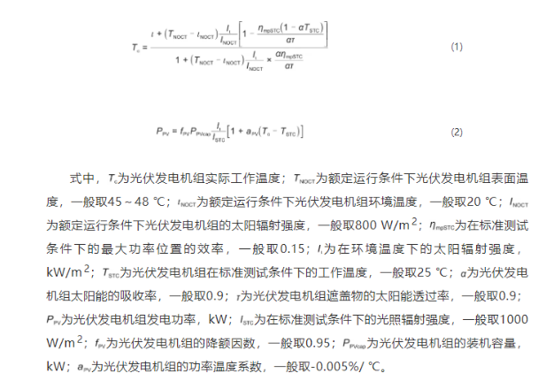 光伏发电机组输出功率通常取决于当地太阳辐射强度,因此结合太阳辐射强度的数据进行精确计算,其计算公式方法见式(1)~式(2)。