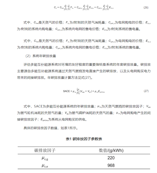多能互补能源系统多目标优化模型以经济性与碳排放量作为计算指标制定目标函数。