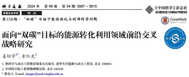 清华大学姜培学院士和中国科学院工程热物理研究所金红光院士在《科学通报》“双清论坛专栏”发表文章,围绕“双碳”目标下能源转化与利用前沿交叉领域战略问题开展研究,研判提出了六大前沿方向,深入分析了工程热物理等学科的交叉关键科学问题,探讨了国内外能源低碳转型的动态,提出了能源转化利用领域政策建议,从而为面向“双碳”目标建立能源碳中和科学技术体系提供重要支撑。