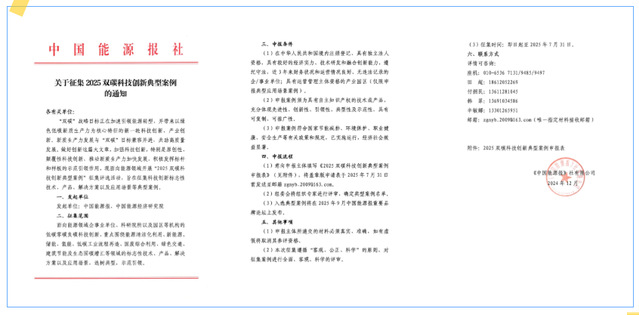 申报条件 (1)在中华人民共和国境内注册登记、具有独立法人资格,具有较好的经济实力、技术研发和融合创新能力,遵纪守法,近3年来财务状况和运营情况良好、无违法记录的企/事业单位;具有运营管理主体资格的产业园区(仅限申报典型应用场景案例)。 (2)申报案例须为具有自主知识产权的技术或产品,充分体现先进性、创新性、引领性、典型性及示范性,具有可复制、可推广性。 (3)申报案例符合国家节能减排、环境保护、职业健康、安全生产等有关政策和规定,已实施运行,经济社会效益显著。 申报流程 (1)意向申报主体填写《2025双碳科技创新典型案例申报表》,将盖章版申请表于2025年7月31日前发送至邮箱zgnyb_2009@163.com。 (2)组委会将组织专家进行评审,确定典型案例名单。 (3)入选典型案例将在2025年9月中国能源报重要品牌论坛上发布。 其他事项 (1)申报主体所递交的材料必须真实、准确,如有虚假将取消其参评资格。 (2)本次征集遵循“客观、公正、科学”的原则,对征集案例进行全面、客观、科学的评审。 (3)征集时间:即日起至2025年7月31日。
