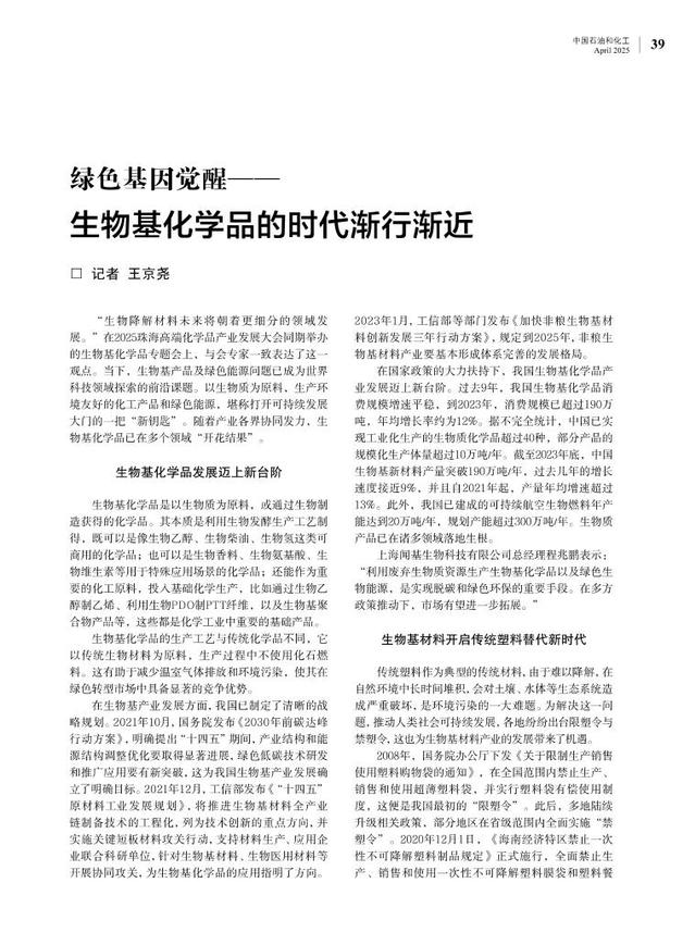 可以预见,有了生物基化学品为清洁低碳、资源循环利用等产业赋能,我国实现绿色可持续发展将更具底气。