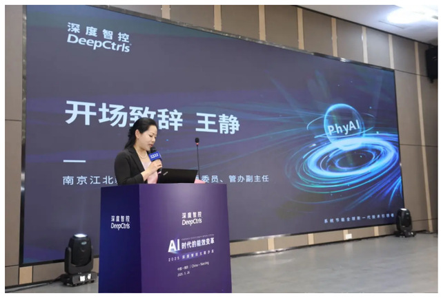 南京江北新区研创园党工委委员、管办副主任王静在致辞中提及,“全球碳中和背景下,数字化绿色技术与AI的深度融合已成为推动经济可持续发展核心引擎。”深度智控一直深耕技术研发和产业化应用,为行业绿色转型提供了坚实的技术支撑。王静主任指出,“今天的论坛既是对国家战略的积极响应,更是推动能效革命的深度探索。”