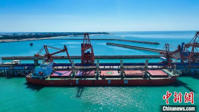4月26日,乐东电厂码头螺旋式卸船机接卸煤炭,使用螺旋式卸船机和管状输煤皮带全封闭卸煤,实现“运煤不见煤,卸煤不见尘”。赵言覃 摄