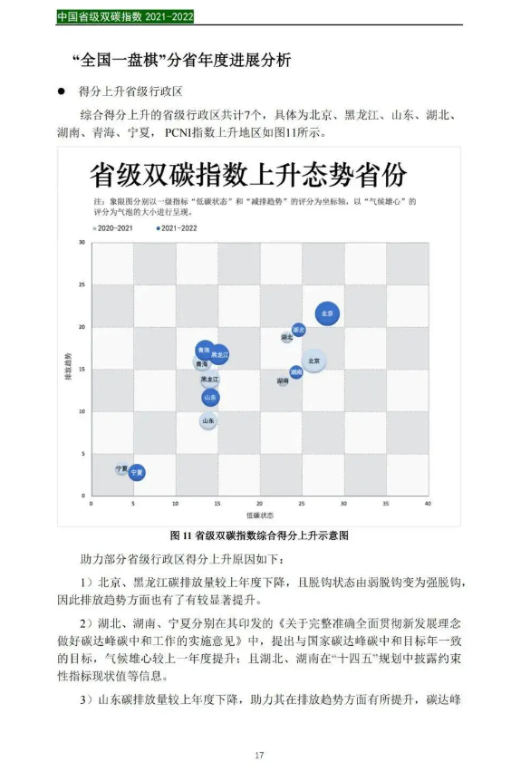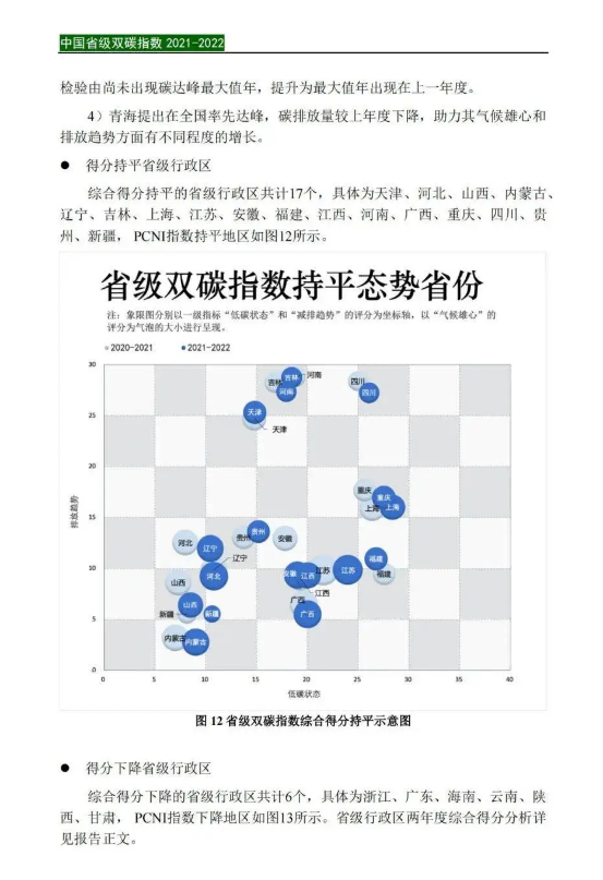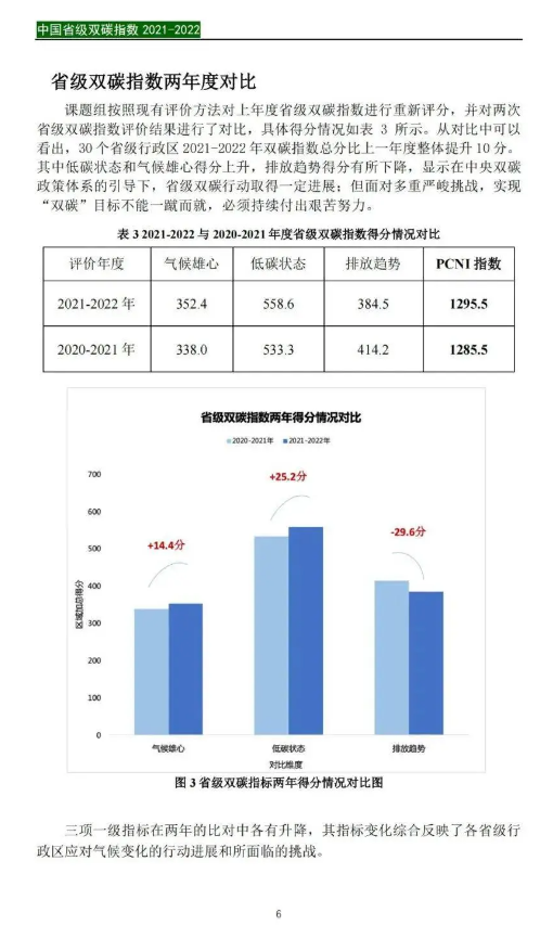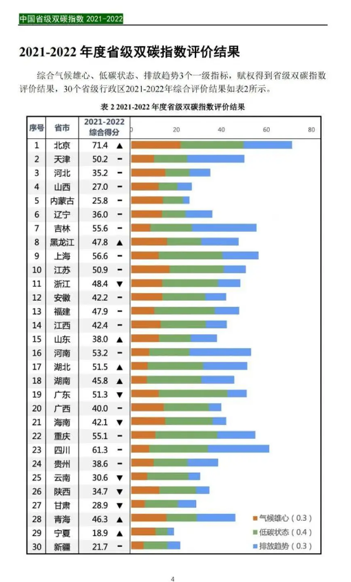 1、省级双碳指数评价结果对比中,北京、四川和上海的得分位居前三位;