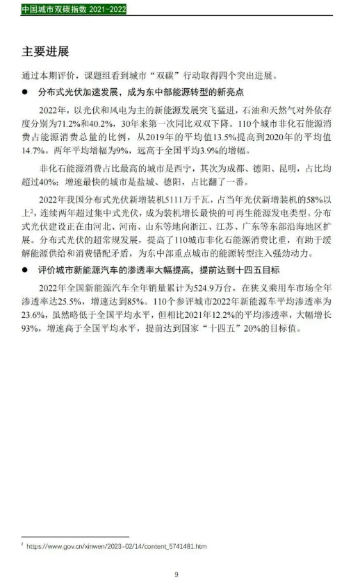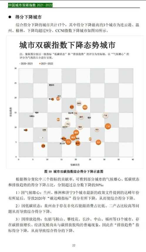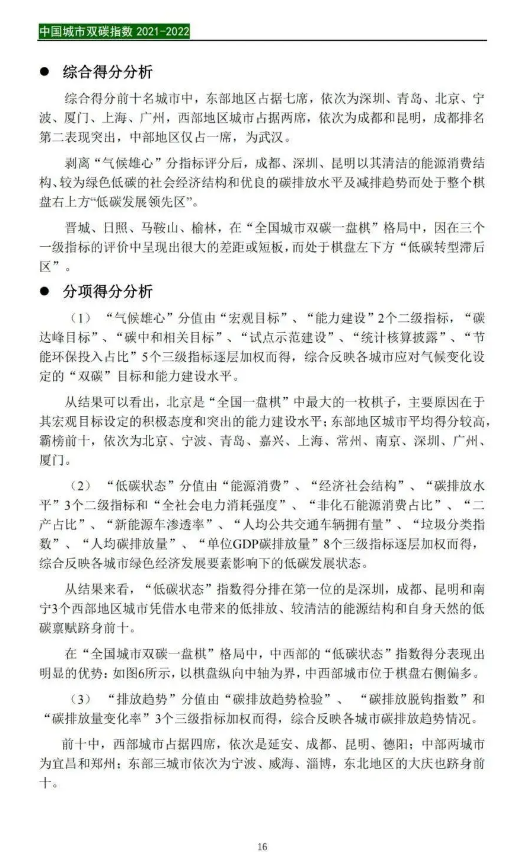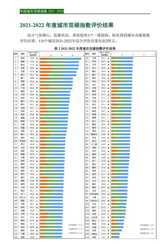 《中国城市双碳指数2021-2022研究报告》来自城市双碳指数研究课题组,从气候雄心、低碳状态、排放趋势三个维度,对全国110个城市“双碳”进展态势进行了系统评价。