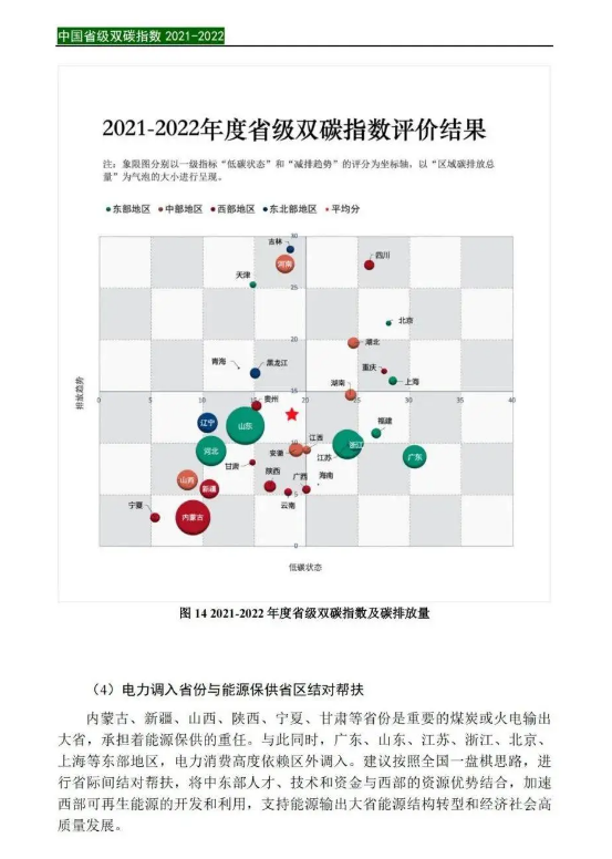 对此,报告建议开展东西部省份结对帮扶,打通区域间绿电交易网络,激发区域多能互补合作动力,促进可再生能源输送和消纳,支持能源保供大省转型发展。