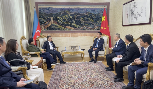 在COP29活动期间,朱晓明、碳研院执行院长蔡亮同苏州代表团一行拜访了中国驻阿塞拜疆经济商务处参赞于宏驰、阿塞拜疆国家能源部副部长奥尔汉并进行会谈。