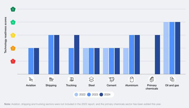 报告聚焦于这些行业减排面临的主要挑战,涵盖了高利率、政治不稳定性、贸易壁垒以及新清洁能源技术的有限获取渠道。此外,大量资金需求集中在低碳电力、氢能源以及碳捕获、利用和储存(CCUS)基础设施的建设上。尽管低碳电力基础设施的发展令人振奋,但氢能和CCUS基础设施目前仅能满足行业需求的不到1%。