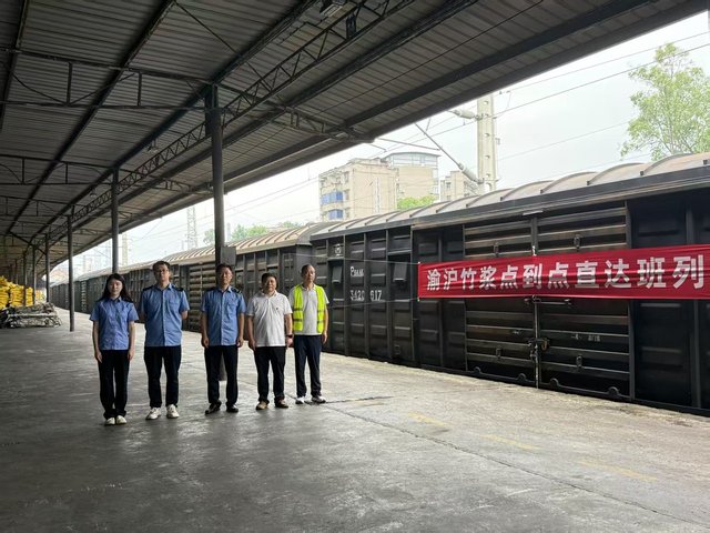 为提升服务质效,重庆铁路物流中心践行“一企一策”定制化服务理念。针对竹浆企业销售网点零散难题,量身制定覆盖十余个省市的分拨方案;围绕运输时效与安全需求,与重庆车务段的深度协同,建立常态化沟通机制,成立联合工作小组,在运力调配、运行组织、信息共享等环节实现全链条联动,推行“三优先”运输保障(优先对位装卸、优先取送车辆、优先编组挂运),以最高作业优先级确保班列运行效率。