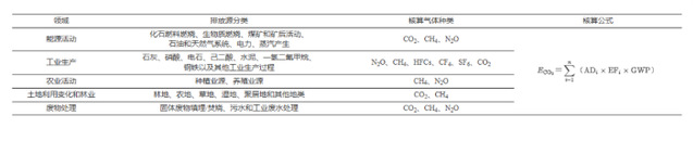 按照《公约》的相关规定,并结合我国国情,碳排放核算对象主要包括能源、工业生产、农业、土地利用变化和林业、废物处理5个领域的碳排放和吸收。核算时考虑的温室气体主要有CO2、CH4、N2O、HFCs、PFCs、SF6及NF3 7种。