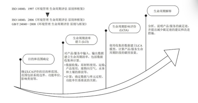 根据PAS 2050、ISO 14067:2018,产品的碳排放核算主要是基于LCA,又称为产品碳足迹核算,是产品在供应链上下游延伸的碳排放,核算时包括产品的上下游企业。1997年,ISO发布了第一个LCA国际标准ISO 14040,对生命周期评价的概念、原则、框架等进行了明确的描述。于2006年发布ISO 14040:2006《环境管理 生命周期评估 原则和框架》、ISO 14044:2006《环境管理 生命周期评估 要求和准则》,ISO 14044:2006旨在为LCA提供详细的指导和规范要求。近年来,生命周期评价取得了较大的发展,为满足我国广大组织采用新标准的需求,全国环境管理标准化技术委员会于2008年将ISO 14040:2006、ISO 14044:2006标准转化为GB/T 24040—2008《环境管理 生命周期评价 原则与框架》与GB/T 24044—2008《环境管理 生命周期评价 要求与指南》。