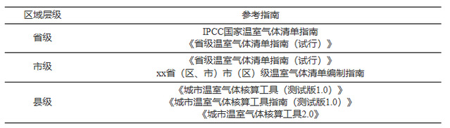 表4 区域温室气体清单指南