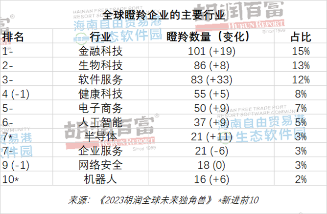 据悉,全球瞪羚企业所处主要行业是金融科技、生物科技和软件服务,其次是健康科技、电子商务和人工智能,胡润研究院信息显示,74%销售软件和服务,只有26%销售实体产品。57%面向企业,43%面向消费者。