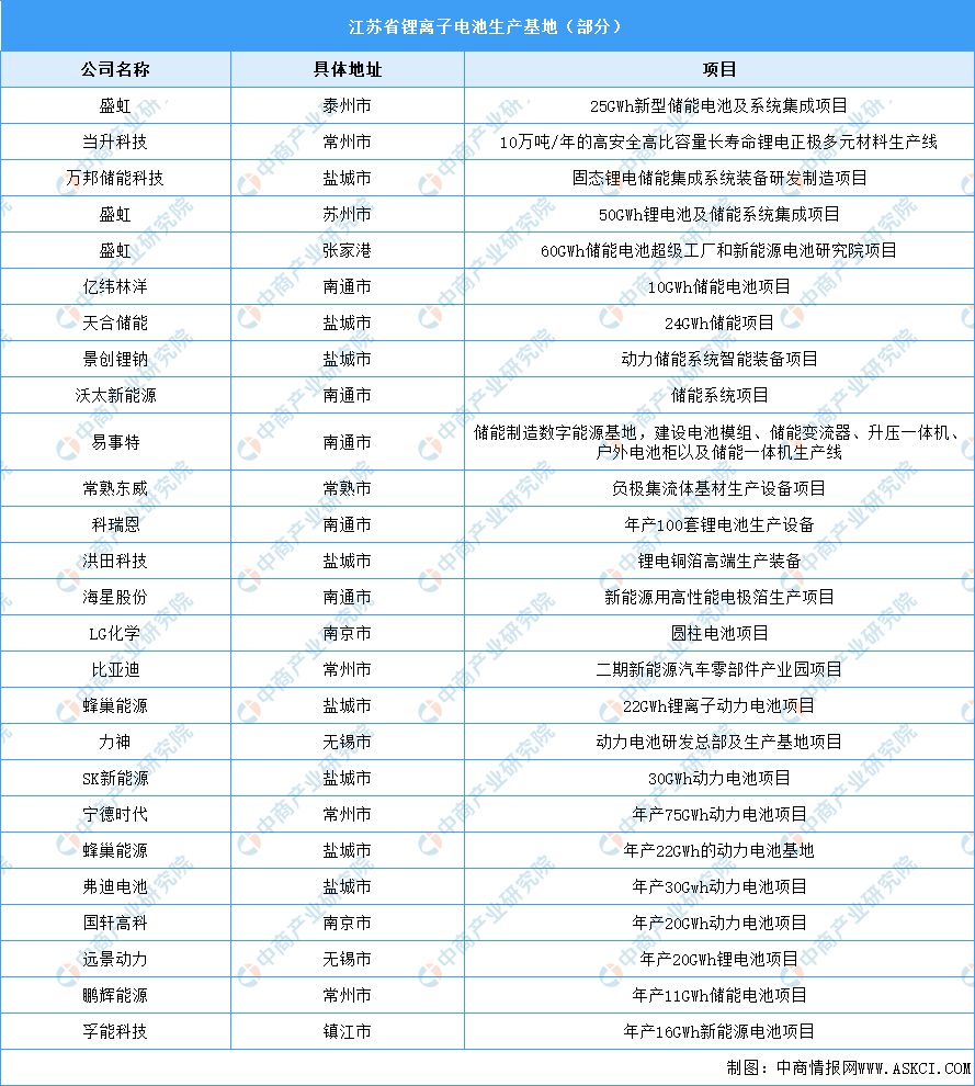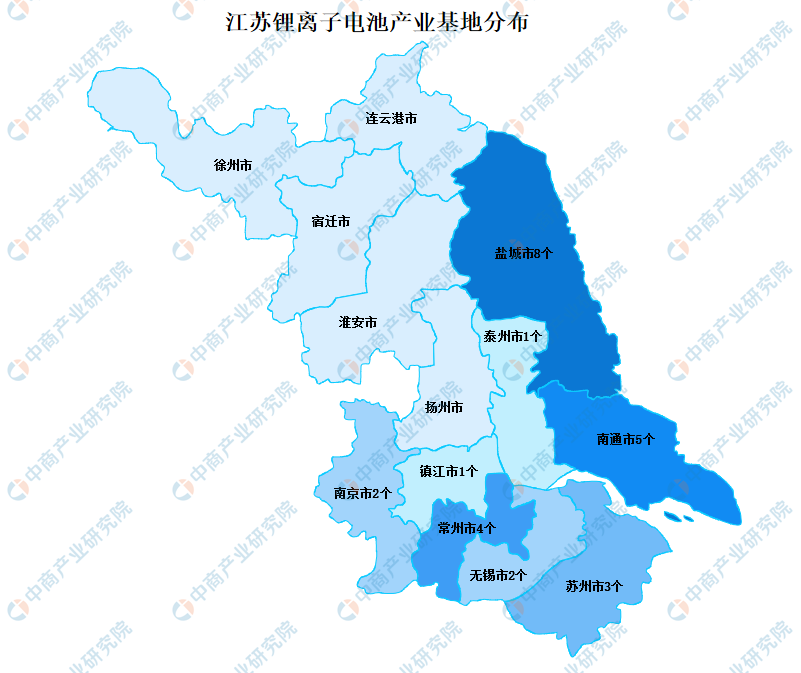 据不完全统计,江苏省锂电生产基地26个,其中,盐城8个,南通5个,常州4个,苏州3个,南京、无锡各2个,泰州、镇江各1个。