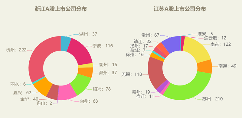 在科创板“助攻”下,江苏上市步伐显著提速,节奏快于浙江。东方财富Choice数据显示,截至7月31日,浙江A股公司数量为683家(剔除已摘牌股票),江苏为675家,差距缩小至8家!
