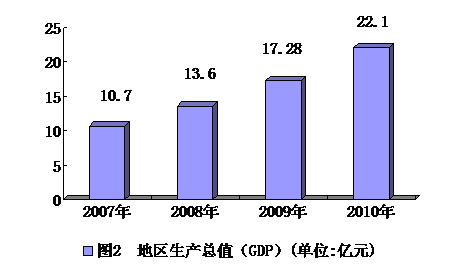 服务业发展迅速,服务业产业增加值从2007年的9.35亿元,增加到2010年的19.32亿元,年均增长19.89%。