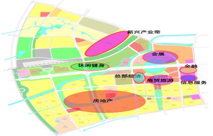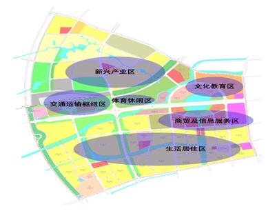 依据新城西区整体功能分工、空间发展战略和产业的空间布局,新城西区经济开发的重点项目及区块将形成若干不同功能区的空间布局,功能分区应能满足商务办公、金融贸易和科技信息等功能,各区独自发挥自己的功能,各具不同的产业导向,支撑新城西区核心板块经济全面平衡的发展。