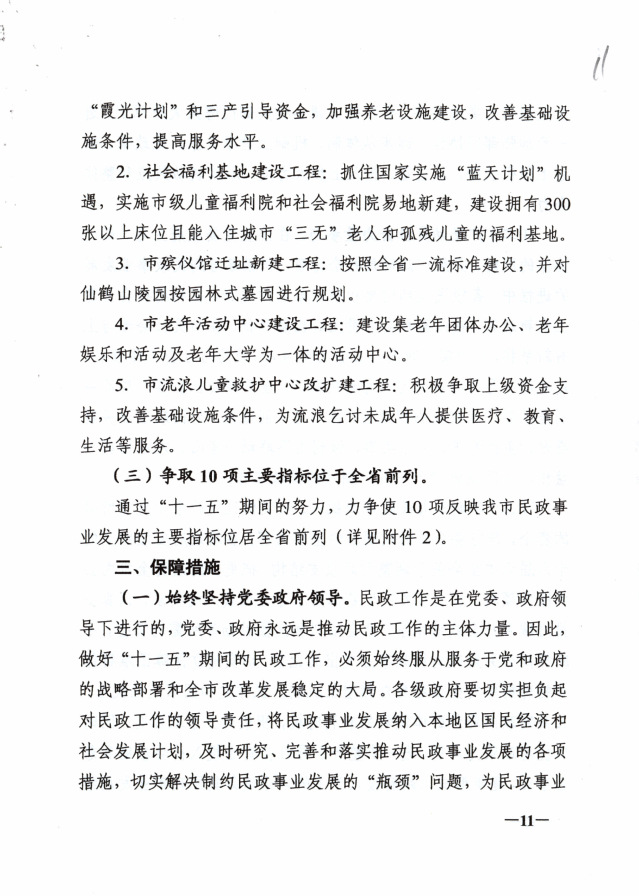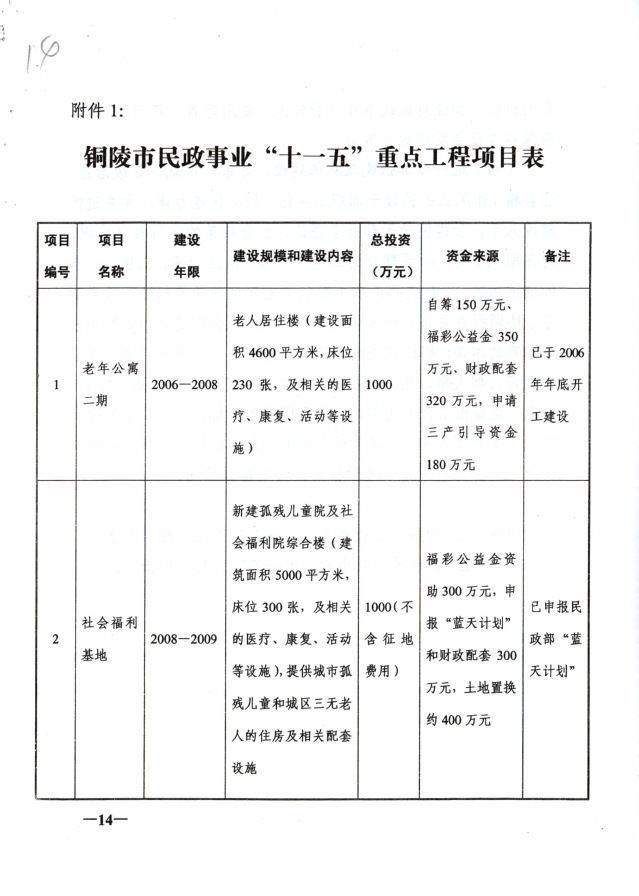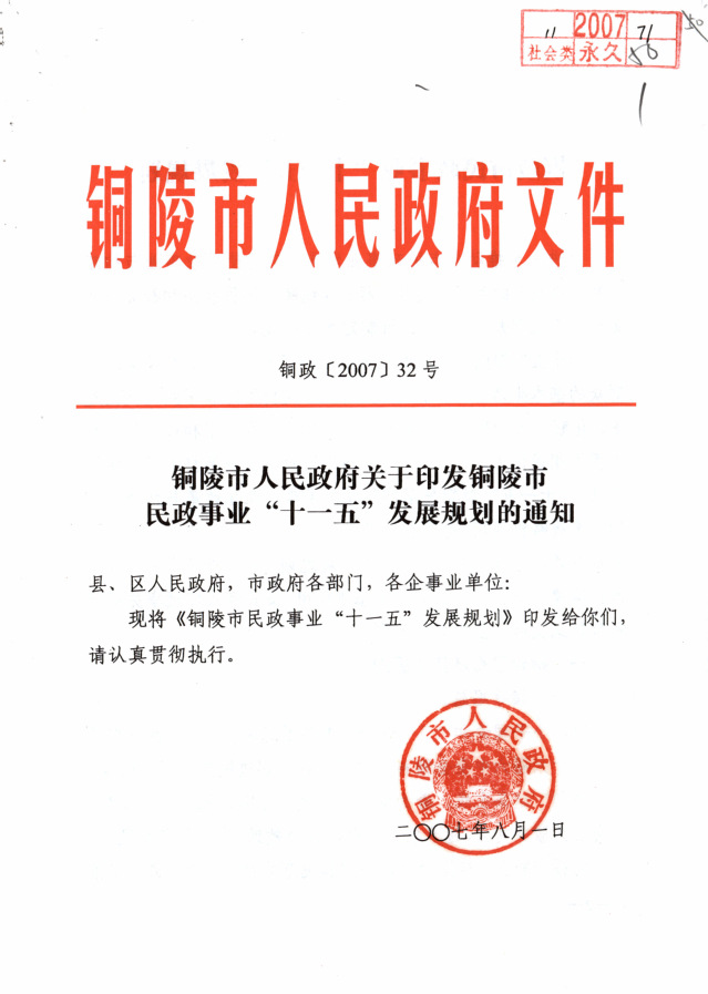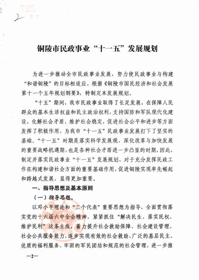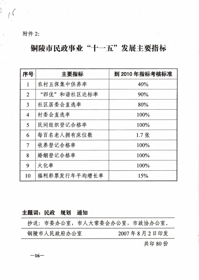 铜陵市民政事业“十一五”发展规划