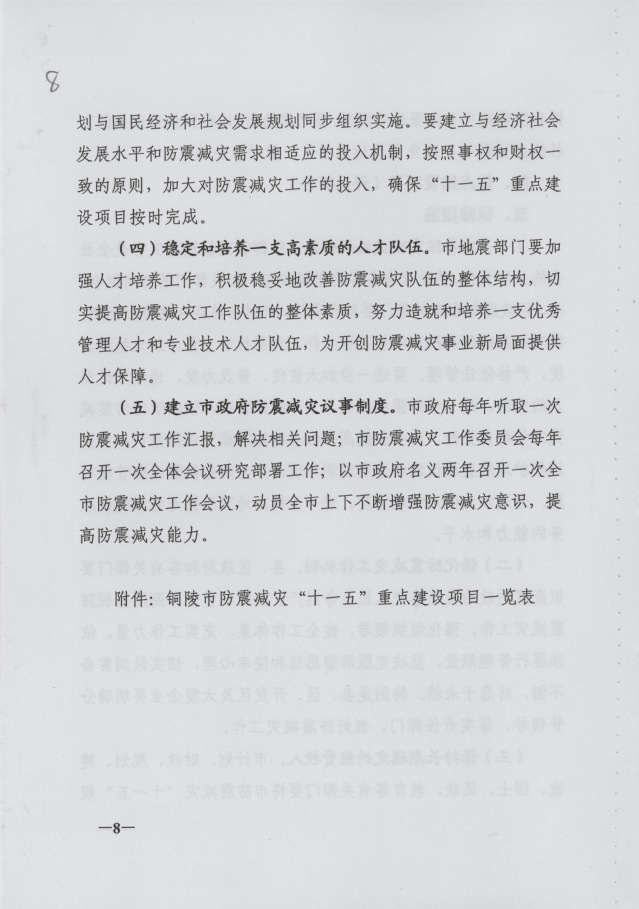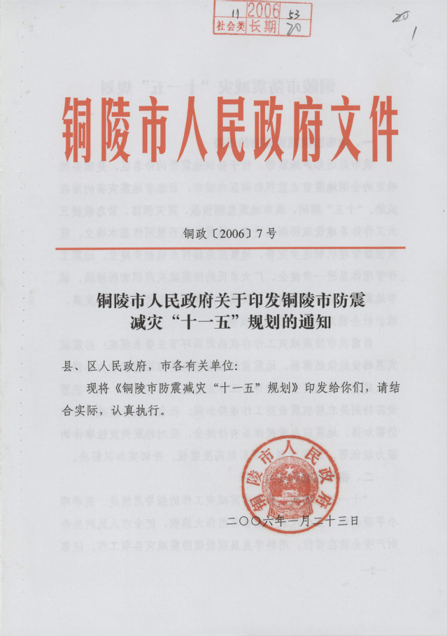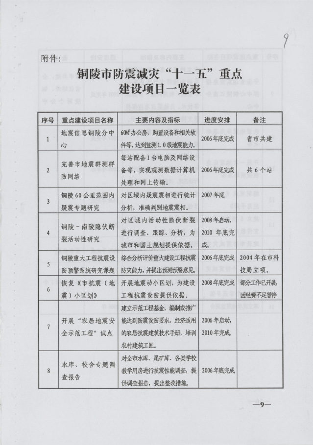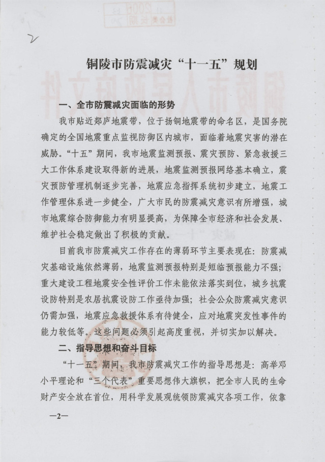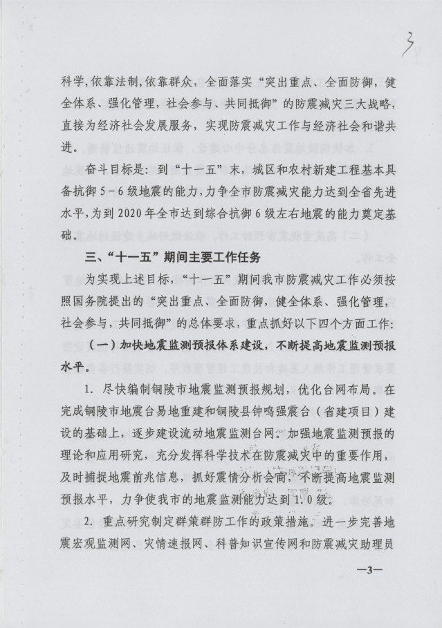 铜陵市防震减灾“十一五”规划