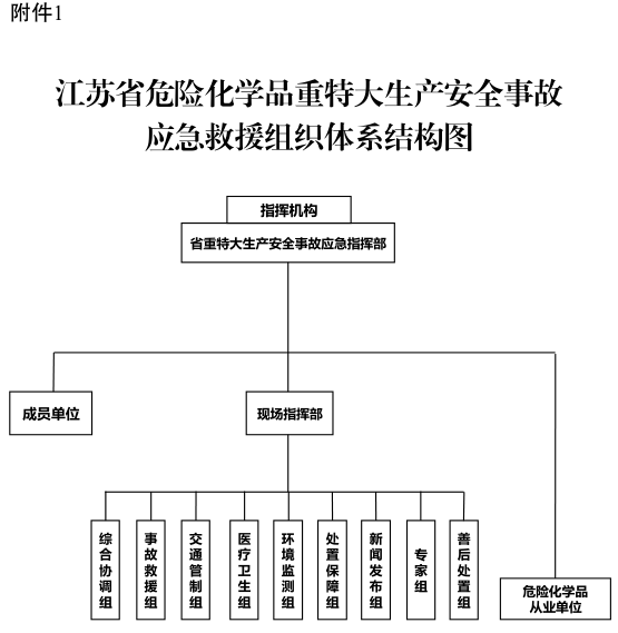 江苏省危险化学品重特大生产安全事故应急救援组织体系结构图见附件1。
