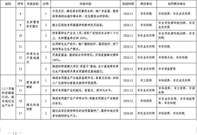 附件:连云港市食用菌产业高质量发展任务清单