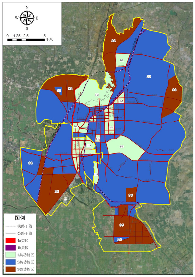 淮北市总面积2741.40km2,其中区划单元总面积为389.65km2,其余部分为乡村区域。由于乡村区域暂未规划明确的用地性质,原则上参照GB3096的规定执行,待建设用地规划功能明确之后,按照规划用地性质参照相应功能属性确定。