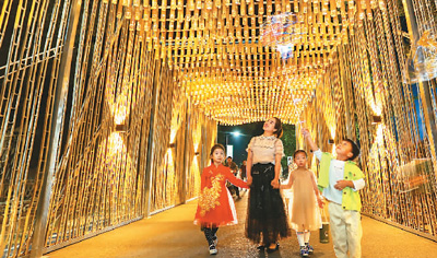 安吉报福镇统里村利用竹子优势制作竹灯,吸引众多游客前来。潘学康摄