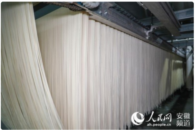 皖神面制品工厂内,正在进行面条制作。 陈若天 摄